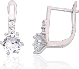 Серебряные серьги на английском замке #2204105(PRh-Gr)_CZ, Серебро 925°, родий (покрытие), Цирконы, 1.8 гр.