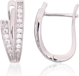 Серебряные серьги на английском замке #2204128(PRh-Gr)_CZ, Серебро 925°, родий (покрытие), Цирконы, 3 гр.