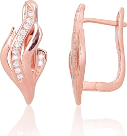 Серебряные серьги на английском замке #2204130(PAu-R)_CZ, Серебро 925°, красное золото (покрытие), Цирконы, 2.6 гр.