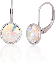 Серебряные серьги на английском замке #2204267(PRh-Gr)_SV-MIXW, Серебро 925°, родий (покрытие), Кристаллы, 2.8 гр.