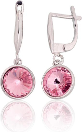 Серебряные серьги на английском замке #2204275(PRh-Gr)_SV-PI, Серебро 925°, родий (покрытие), Кристаллы, 4.5 гр.