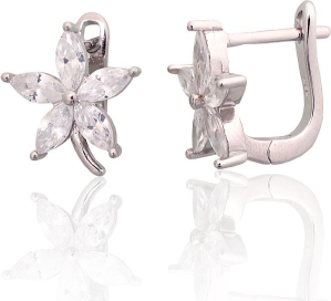 Серебряные серьги на английском замке #2204286(PRh-Gr)_CZ, Серебро 925°, родий (покрытие), Цирконы, 2.8 гр.