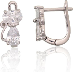 Серебряные серьги на английском замке #2204287(PRh-Gr)_CZ, Серебро 925°, родий (покрытие), Цирконы, 2.6 гр.