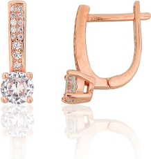 Серебряные серьги на английском замке #2204309(PAu-R)_CZ, Серебро 925°, красное золото (покрытие), Цирконы, 2.5 гр.