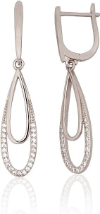 Серебряные серьги на английском замке #2204312(PRh-Gr)_CZ, Серебро 925°, родий (покрытие), Цирконы, 3.4 гр.