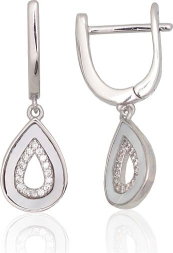 Серебряные серьги на английском замке #2204313(PRh-Gr)_CZ+PL, Серебро 925°, родий (покрытие), Цирконы, Перламутр, 2.6 гр.
