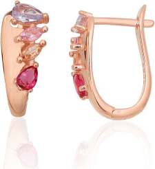 Серебряные серьги на английском замке #2204315(PAu-R)_CZ-MIX, Серебро 925°, красное золото (покрытие), Цирконы, 2.7 гр.