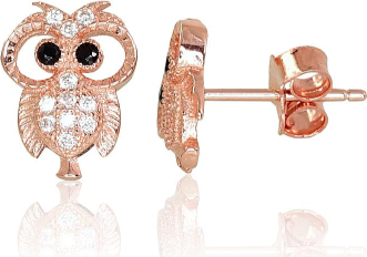 Серебряные серьги-пуссеты #2202970(PAu-R)_CZ+CZ-BK, Серебро 925°, красное золото (покрытие), Цирконы, 1.6 гр.