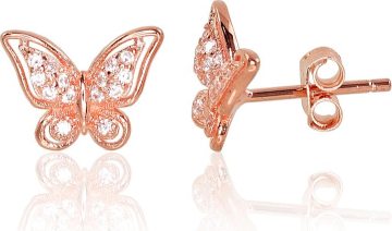 Серебряные серьги-пуссеты #2203151(PAu-R)_CZ, Серебро 925°, красное золото (покрытие), Цирконы, 1.5 гр.