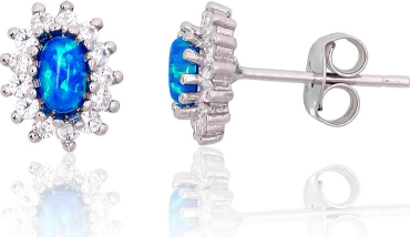 Серебряные серьги-пуссеты #2204141(PRh-Gr)_CZ+OP-B, Серебро 925°, родий (покрытие), Цирконы, Опалит, 1.3 гр.