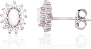 Серебряные серьги-пуссеты #2204141(PRh-Gr)_CZ+OP-W, Серебро 925°, родий (покрытие), Цирконы, Опалит, 1.3 гр.