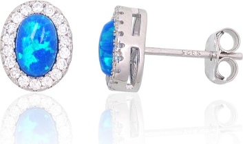 Серебряные серьги-пуссеты #2204143(PRh-Gr)_CZ+OP-B, Серебро 925°, родий (покрытие), Цирконы, Опалит, 1.5 гр.