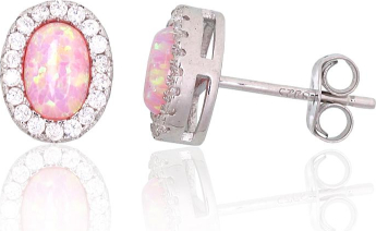 Серебряные серьги-пуссеты #2204143(PRh-Gr)_CZ+OP-PI, Серебро 925°, родий (покрытие), Цирконы, Опалит, 1.6 гр.