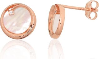 Серебряные серьги-пуссеты #2204162(PAu-R)_CZ+PL, Серебро 925°, красное золото (покрытие), Цирконы, Перламутр, 1.4 гр.