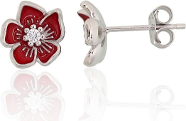Серебряные серьги-пуссеты #2204298(PRh-Gr)_CZ+ML-R, Серебро 925°, родий (покрытие), Цирконы, Ювелирная эмаль, 1.8 гр.