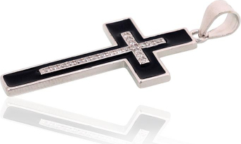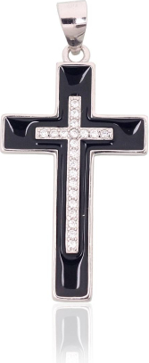 Серебряный кулон #2301981(PRh-Gr)_CZ+ML-BK, Серебро 925°, родий (покрытие), Цирконы, Ювелирная эмаль, 1.9 гр.