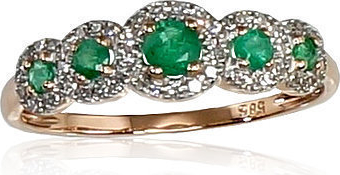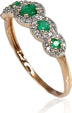 Золотое кольцо #1100202(Au-R+PRh-W)_DI+EM, Красное Золото 585°, родий (покрытие), Бриллианты (0,103Ct), Изумруд (0,246Ct), Размер: 16.5, 1.19 гр.