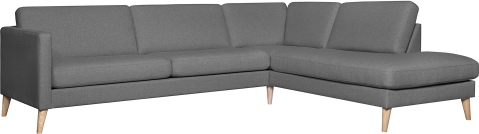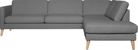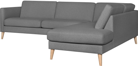 | Corner sofa LISANNA RC grey. The seat and backrest cushions are covered with grey polyester fabric. The cushions are made of foam. Both seat and backrest cushions have removable covers. The frame is made of solid wood, plywood, fibreboard and particle board. The frame is covered with foam. The sofa has zigzag suspension. The sofa legs are made of oak. The seat height is 46cm and depth 57cm. The dimensions of the product are 260x90/205xH80cm. | ||||||||