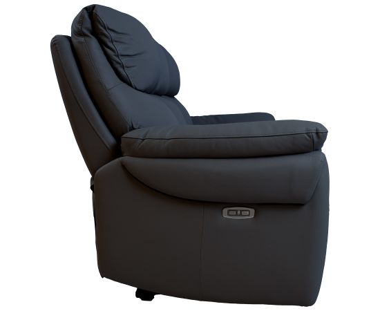 | Recliner sofa BOWEN 3-seater with electric mechanism, dark grey genuine leather.
