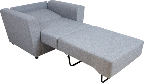 Armchair bed VESPER gray. A folding armchair bed is a functional and comfortable solution for creating an extra sleeping place. The frame of the armchair is made of birch plywood and solid wood. Durable HR foam is used for padding. Under the folding seat is a zig-zag suspension. Armchair body and cushions are covered with high-quality furniture fabric, Martindale value 90,000 - 100,000. To open the armchair, remove the back cushion. Pull out the seat and adjust the metal legs into the correct position. Place the back cushion horizontally in the opening towards the headboard. The overall dimensions of the armchair are 112x83xH86cm. Seat width 72cm, seat depth 54cm, seat height 45cm. armrest height from the ground 63cm. The dimensions of the bed are 190x72xH41cm. The armchair is manufactured in Estonia. | ||||||||