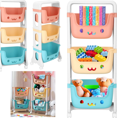 Полка для игрушек с 3 ящиками Springos HA7481 на колесиках