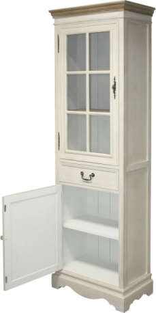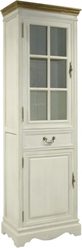 Шкаф-витрина SAMIRA с 2-дверьми и ящиком, 60x35xH195,5см, цвет: антично-белый/коричневый
