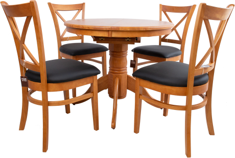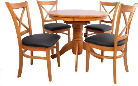 | Обеденный комплект MIX & MATCH стол и 4 стула, дуб светлый. Стол обеденный раздвижной MIX & MATCH D90 + 30xH74см. Стол изготовлен из каучукового дерева и покрыт лаком под светлый дуб. Столешница открывается посередине, а удлинительная пластина размещается между двумя сторонами. Под столешницей хранится откидная удлинительная пластина шириной 30 см. Обеденный стул MIX & MATCH 43x43xH90,5см. Сиденье обито черной искусственной кожей. Ножки и каркас изготовлены из каучукового дерева и покрыты лаком под светлый дуб. Максимальный вес 100кг. | ||||||||
