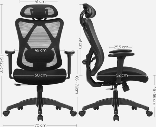 Krzesło biurowe Songmics Krzesło Biurowe, Ergonomiczne Krzesło Biurowe, Krzesło Komputerowe, Krzesło Siatkowe, Regulowane Podparcie Lędźwiowe I Zagłówek,