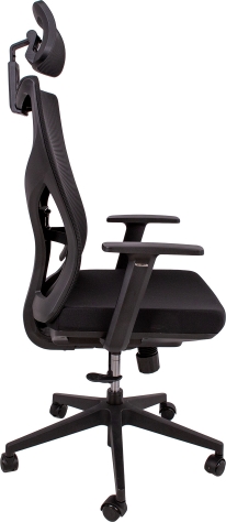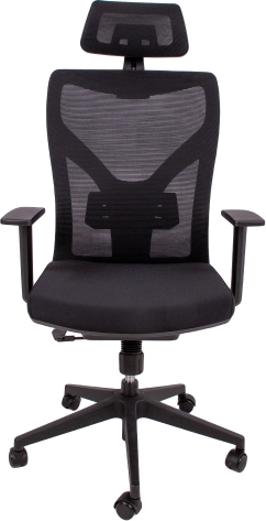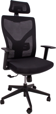 | Рабочий стул VENON черный. Сиденье обтянуто полиэфирной тканью, 50 000 Мартиндейл. Спинка и подголовник покрыты сеткой из полиэстера марки 30 000 Martindale. Кресло имеет механизм наклона, фиксируемый в одном положении. Регулируемая поясничная опора. Пневматическая регулировка сиденья по высоте. Корпус и каркас спинки выполнены из пластика черного цвета. Подлокотники фиксированные. Высота и угол наклона подголовника регулируются. Пластиковая основа с 5 зубцами черного цвета, R34см. Нейлоновые ролики, 50 мм. Высота 94-100,5см, ширина сиденья 49см, глубина 48см, высота сиденья 45-54см. Размеры изделия 58x58xH94-100,5см. Грузоподъемность 120 кг. | ||||||||