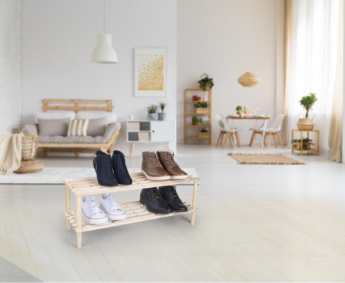 Szukasz lekkiej przenośnej szafki, na której ustawisz buty lub kapcie? PÓŁKI REGAŁ NA BUTY 2 POZIOMY DREWNIANY ALPINA sprawi, że twoje buty będą schludnie przechowywane i zawsze pod ręką!