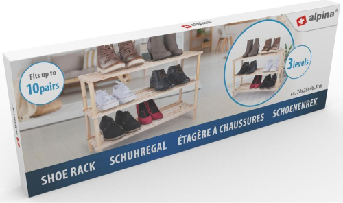 Вы ищете легкую переносную тумбу, на которой можно разместить обувь или тапочки? ALPINA 3 TIER WOOD SHOE RACK позволит хранить обувь аккуратно и всегда держать ее под рукой!