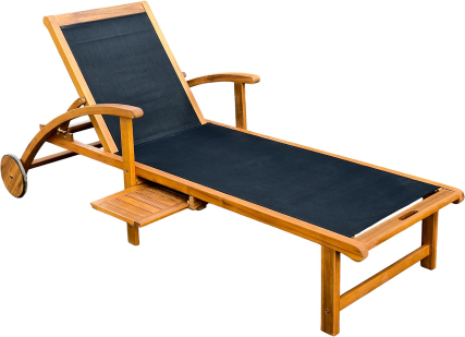 The side table placed under the sun lounger can be pulled out to the left or right side.