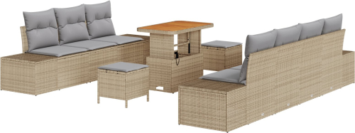 10-częściowy zestaw sof ogrodowych vidaXL z poduszkami Beżowy Polirattan Akacja