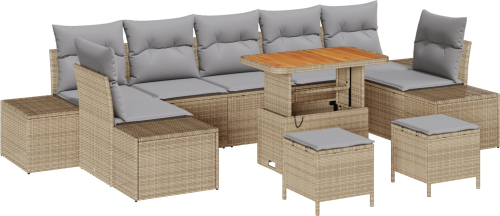 10-częściowy zestaw sof ogrodowych vidaXL z poduszkami Beżowy Rattan Akacja