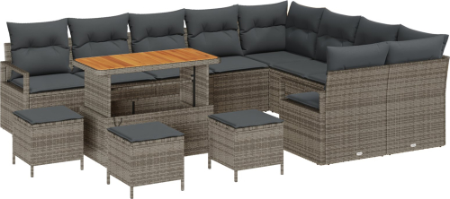 13-Częściowy zestaw sof ogrodowych vidaXL z poduszkami szary polirattan akacja