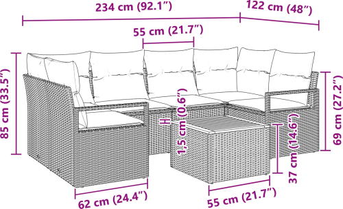 7-częściowy zestaw sof ogrodowych vidaXL z poduszkami czarny polirattan akacja