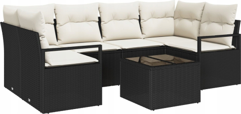 7-częściowy zestaw sof ogrodowych vidaXL z poduszkami czarny polirattan