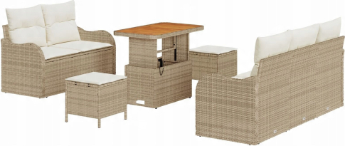 8-częściowy zestaw sof ogrodowych vidaXL z poduszkami Beżowy Poli Rattan Akacja