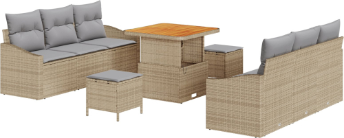 9-częściowy zestaw sof ogrodowych vidaXL z poduszkami beżowy polirattan akacja