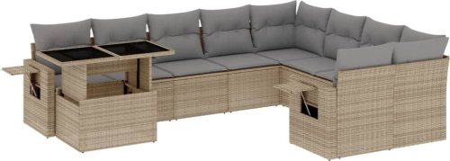 vidaXL 10-cz. zestaw mebli ogrodowych z poduszkami, beżowy, polirattan