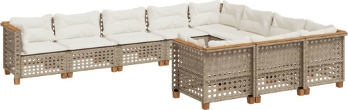 vidaXL 10-cz. zestaw mebli ogrodowych z poduszkami, beżowy, polirattan