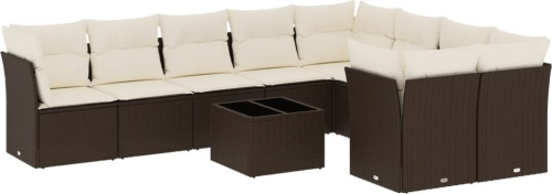 vidaXL 10-cz. zestaw mebli ogrodowych z poduszkami, brązowy polirattan