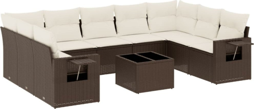 vidaXL 10-cz. zestaw mebli ogrodowych z poduszkami, brązowy polirattan