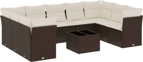 vidaXL 10-cz. zestaw mebli ogrodowych z poduszkami, brązowy polirattan