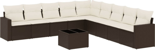 vidaXL 10-cz. zestaw mebli ogrodowych z poduszkami, brązowy polirattan