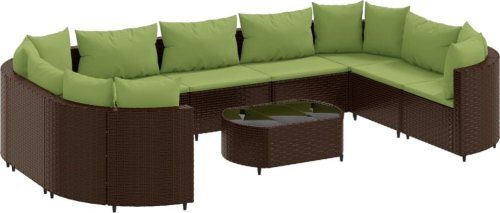 vidaXL 10-cz. zestaw mebli ogrodowych z poduszkami, brązowy polirattan