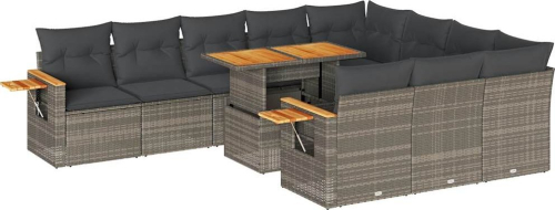 vidaXL 10-cz. zestaw mebli z poduszkami, szary, polirattan i akacja
