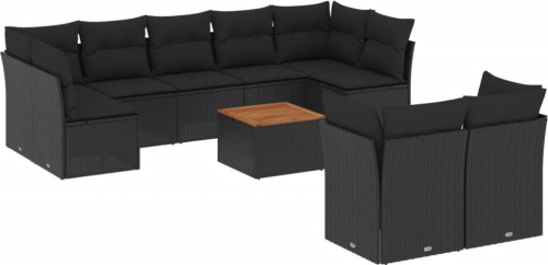 vidaXL 10-cz. zestaw wypoczynkowy do ogrodu, poduszki czarny rattan PE