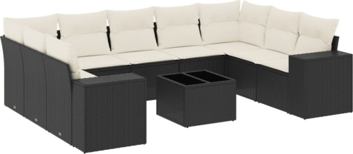vidaXL 10-cz. zestaw wypoczynkowy do ogrodu, poduszki czarny rattan PE