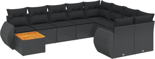 vidaXL 10-cz. zestaw wypoczynkowy do ogrodu, poduszki czarny rattan PE